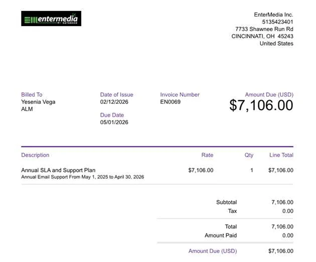 Hi team, we seem to have incorrect dates on our latest invoice - Invoice EN0069. Can you confirm, update and resend with the correct dates?
